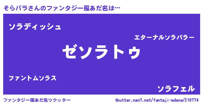 | 伝説のあだ名 | 『古より伝わる吟遊詩人そらパラ』 |