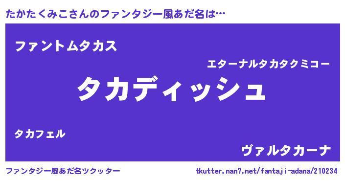 | 意味不明あだ名 | 『永久保存たかたくみこ』 |