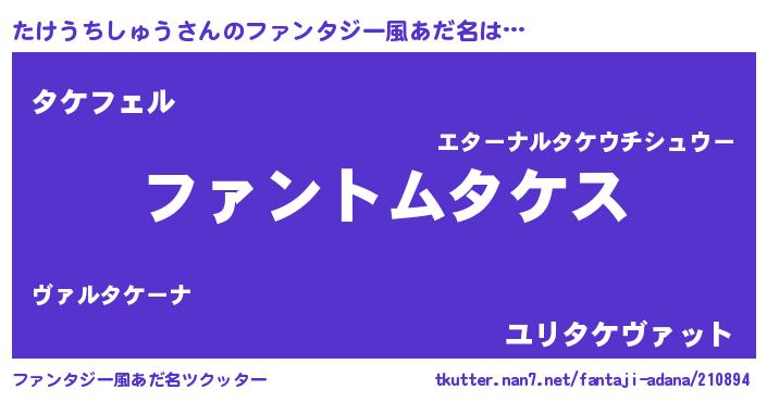 | 男性向けラノベタイトル風あだ名 | 『たけうちしゅうの嫁は女の子じゃないと思った?』 |