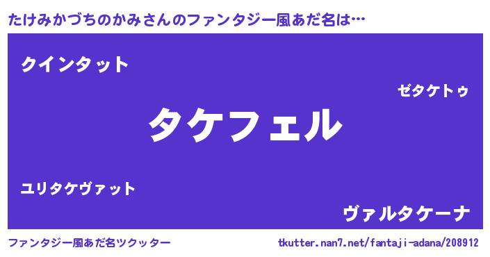 | ヒーロー風カッコイイあだ名 | 『スーパータケミカヅチノカミ』 |