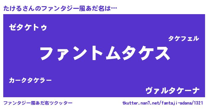 | 意味不明あだ名 | 『とにかく怪しいたける』『自称たける』 |