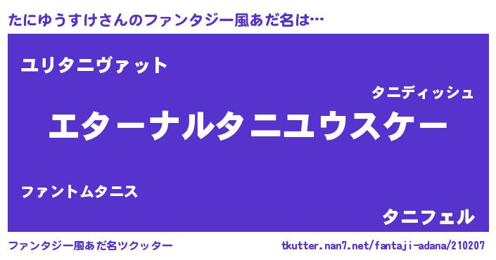 | 意味不明あだ名 | 『たにゆうすけフォーエバー』 |