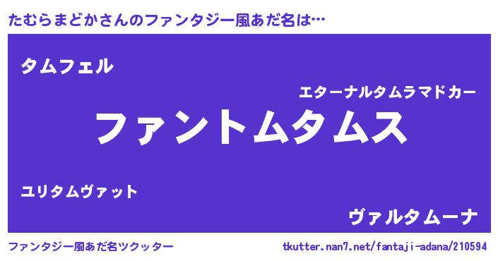 | ポケモン風あだ名 | 『ヒタムラマドカ』『タムチュウ』 |