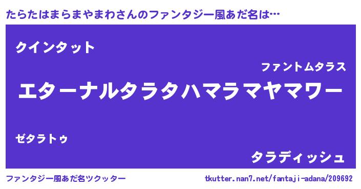 | 意味不明あだ名 | 『たらたはまらまやまわフォーエバー』 |