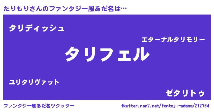 | 男性向けラノベタイトル風あだ名 | 『タリモリアートオンライン』 |