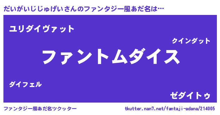 | 女子向けラノベタイトル風あだ名 | 『だいがいじじゅげいの卵を拾いまして』 |