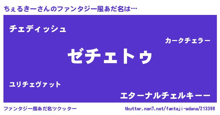 | 意味不明あだ名 | 『自称ちぇるきー』『永久保存ちぇるきー』 |