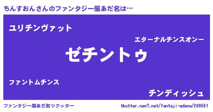 | 男性向けラノベタイトル風あだ名 | 『Re:ちんすおんから始める異世界生活』 |