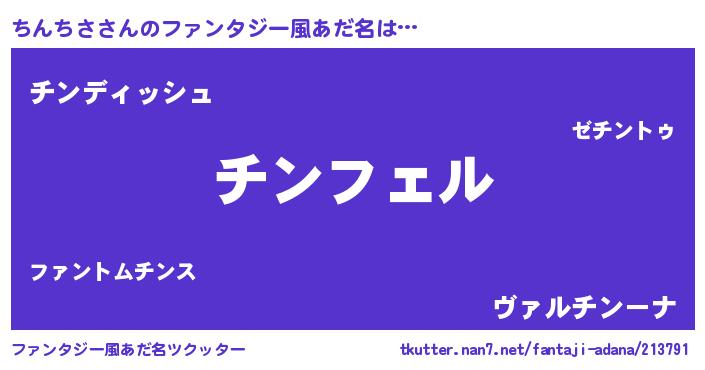 | ヘコむあだ名 | 『ちんふぇ~』『ちんちさ(小並感)』 |