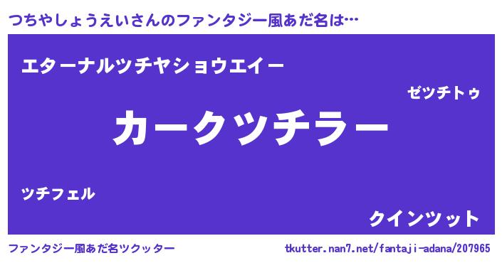 | 男性向けラノベタイトル風あだ名 | 『うちのつちやしょうえいが世界を掌握している!』 |