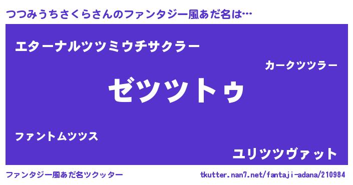 | 意味不明あだ名 | 『自称つつみうちさくら』 |