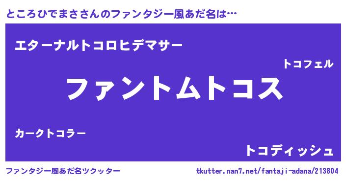 | ポケモン風あだ名 | 『ヒトコロヒデマサ』『トコロダネ』 |