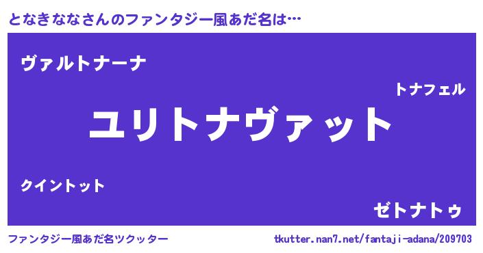 | 男性向けラノベタイトル風あだ名 | 『トナキナナスレイヤー』 |