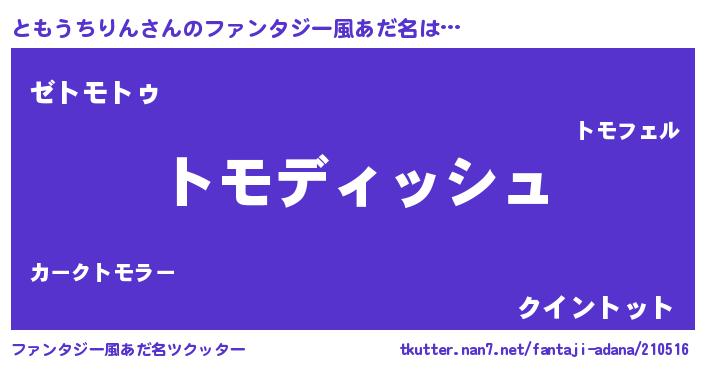 | ヘコむあだ名 | 『ともうちりん(小並感)』『ともふぇ~』 |