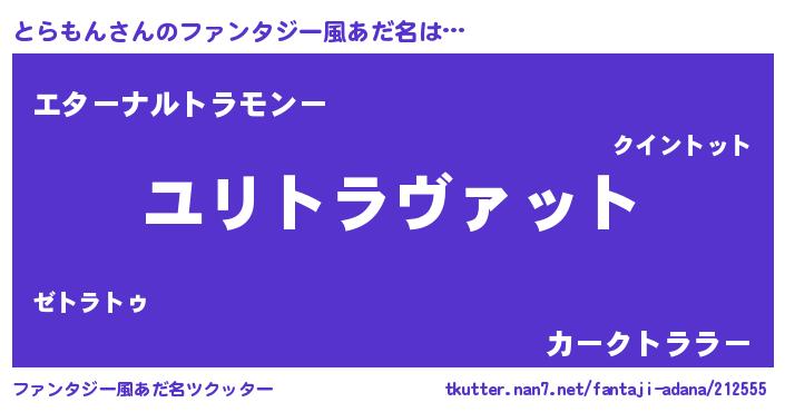 | 男性向けラノベタイトル風あだ名 | 『とらもんに滅ぼされるだけの簡単なお仕事です』 |