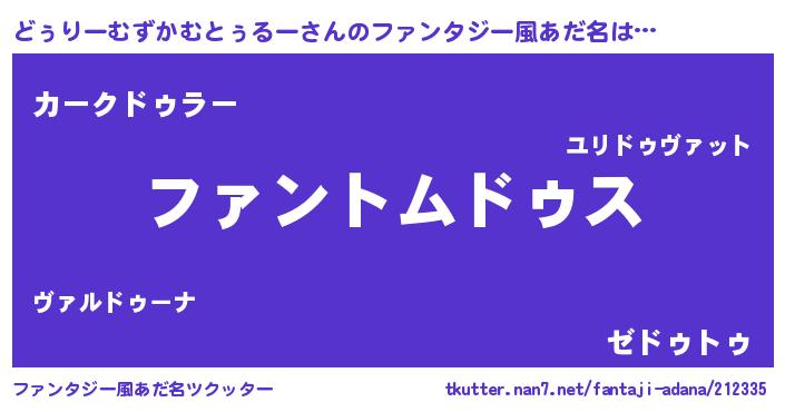 | 男性向けラノベタイトル風あだ名 | 『ダンジョンにどぅりーむずかむとぅるーを求めるのは間違っているだろうか』 |