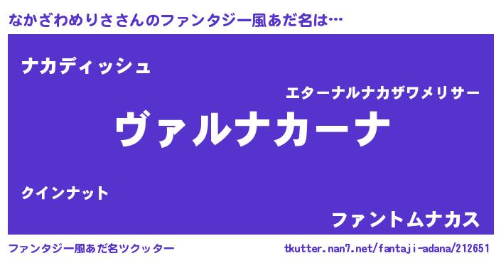 | ヒーロー風カッコイイあだ名 | 『仮面ナカダー』『ネオナカザワメリサ』 |