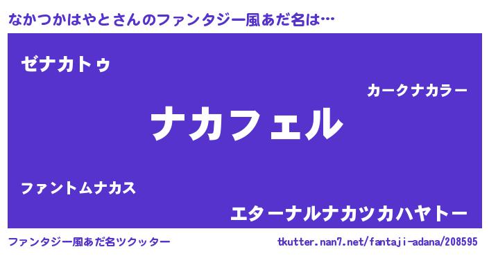 | 男性向けラノベタイトル風あだ名 | 『ナカツカハヤトアートオンライン』 |