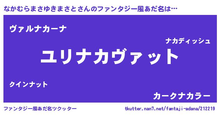 | 男性向けラノベタイトル風あだ名 | 『なかむらまさゆきまさと~年齢イコール彼女いない歴の魔法使い~』 |