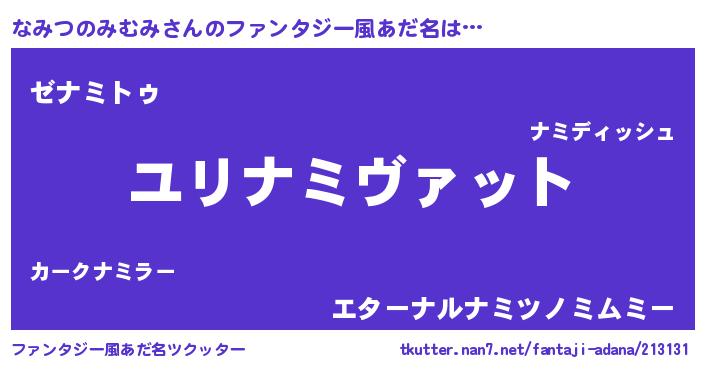 | 男性向けラノベタイトル風あだ名 | 『ナミツノミムミスレイヤー』 |