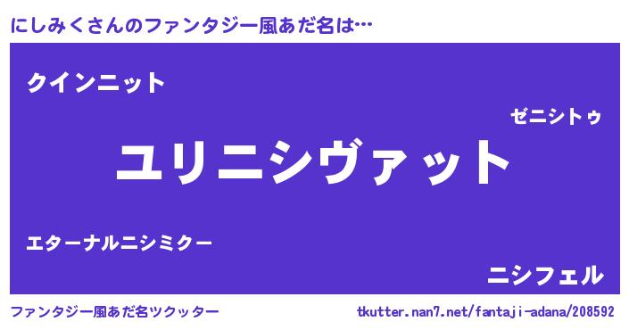| ヒーロー風カッコイイあだ名 | 『慈愛の使者にしみく』『ネオニシミク』 |