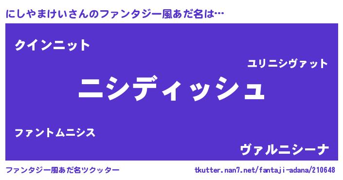 | ヘコむあだ名 | 『にしやまけい(小並感)』『にしを』 |