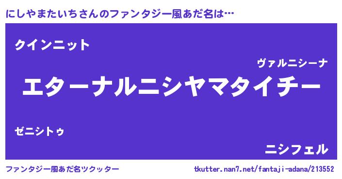 | 意味不明あだ名 | 『にしやまたいちフォーエバー』 |