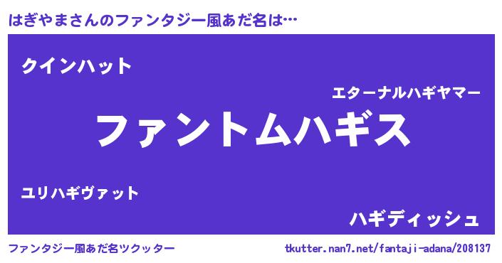 | 男性向けラノベタイトル風あだ名 | 『はぎやまに滅ぼされるだけの簡単なお仕事です』 |