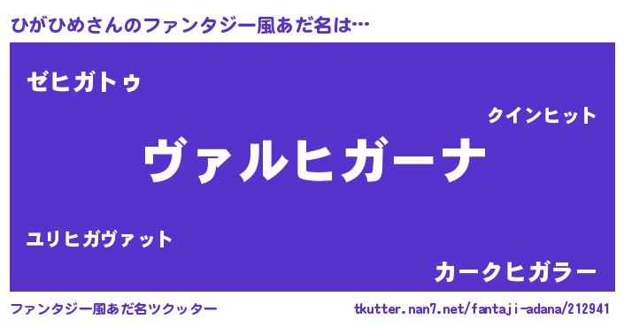 | 意味不明あだ名 | 『住所不定無職ひがひめ(10歳)』 |