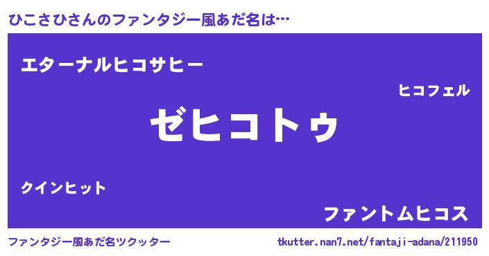 | ヒーロー風カッコイイあだ名 | 『サイバー戦士ヒコサヒ』『銀牙騎士ヒコ』 |