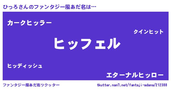 | 自動車の名前っぽいあだ名 | 『プリヒッ』『フェヒーッ』『ヒクア』 |
