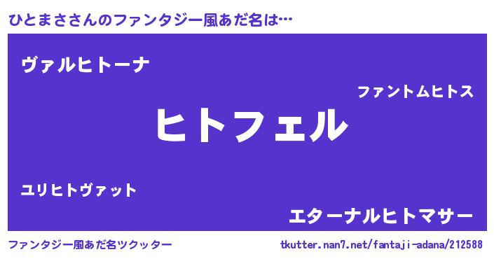 | 男性向けラノベタイトル風あだ名 | 『ひとまさの憂鬱』『魔弾の王とひとまさ』 |