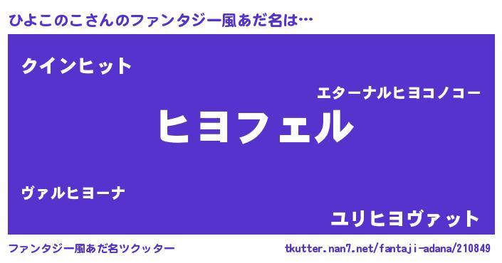 | 男性向けラノベタイトル風あだ名 | 『ヒヨコノコアートオンライン』 |