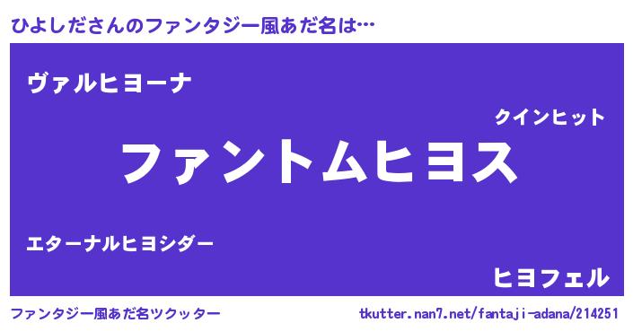 | 男性向けラノベタイトル風あだ名 | 『ダンジョンにひよしだを求めるのは間違っているだろうか』 |