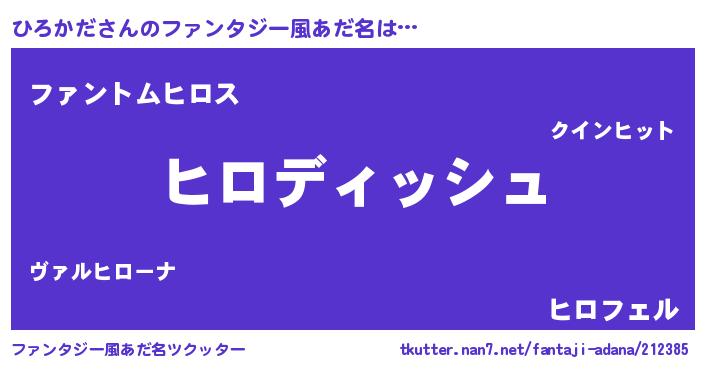 | ヒーロー風カッコイイあだ名 | 『ネオヒロカダ』『魔戒騎士ヒロ』 |