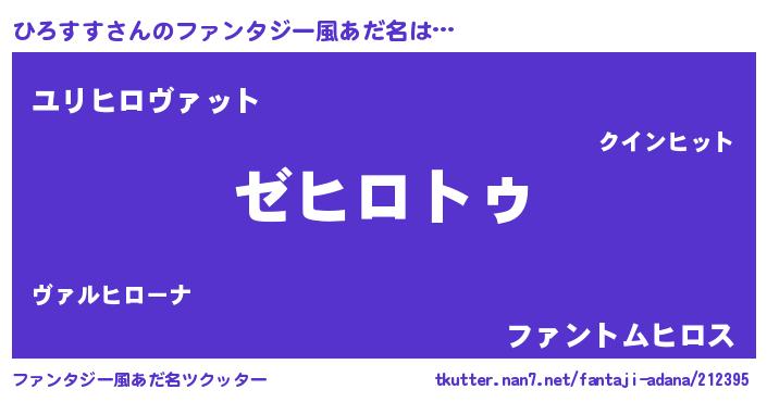 | ヒーロー風カッコイイあだ名 | 『超時空戦士ヒロスス』『炎刃騎士ヒロ』 |