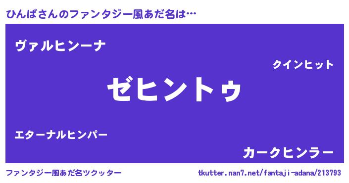 | ヒーロー風カッコイイあだ名 | 『超時空戦士ヒンパ』『仮面ヒンダー』 |