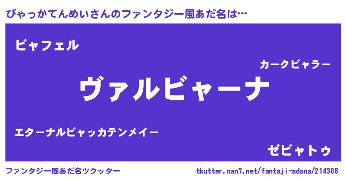 | 男性向けラノベタイトル風あだ名 | 『この素晴らしい世界にびゃっかてんめいを!』 |