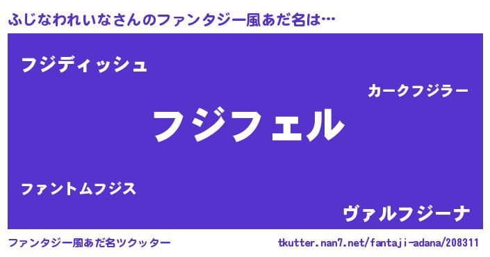 ふじなわれいなさんのファンタジー風あだ名をツクッター!
