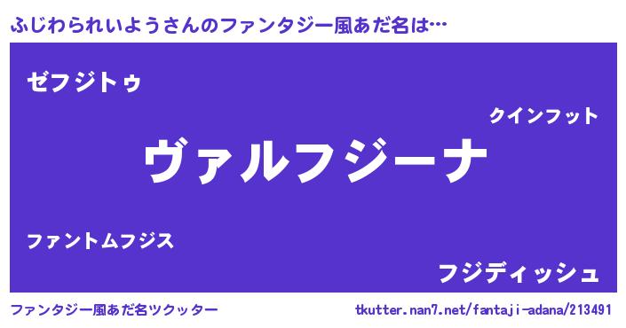 | 意味不明あだ名 | 『住所不定無職ふじわられいよう(93歳)』 |