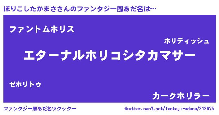 | 男性向けラノベタイトル風あだ名 | 『ほりこしたかまさに滅ぼされるだけの簡単なお仕事です』 |