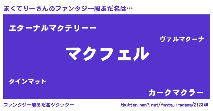 | 意味不明あだ名 | 『ペロリンまくてりー』『自称まくてりー』 |
