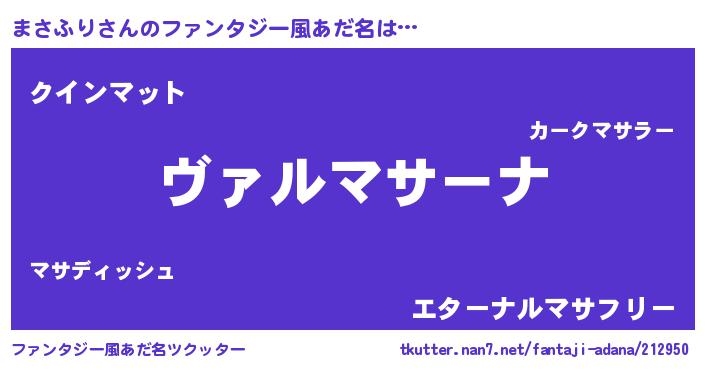 | 男性向けラノベタイトル風あだ名 | 『魔弾の王とまさふり』 |