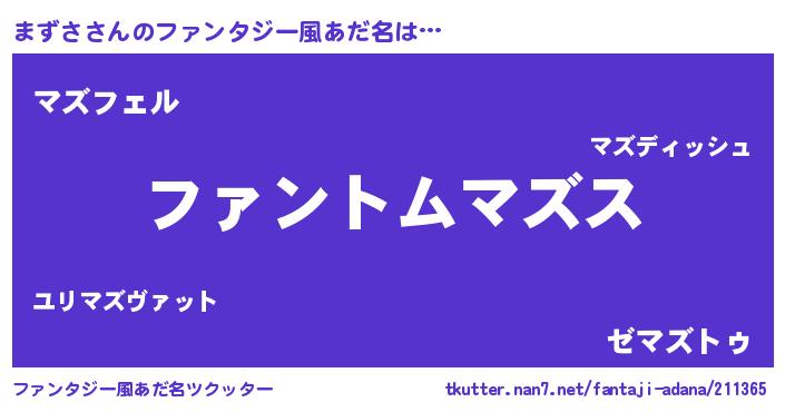 | 意味不明あだ名 | 『とにかく怪しいまずさ』『自称まずさ』 |