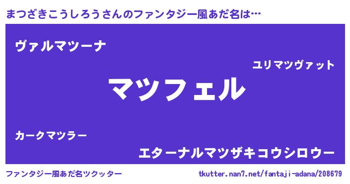 | 胡散臭い通販商品みたいなあだ名 | 『億万長者になれるブレスレット…その名も「まつざきこうしろう」』 |