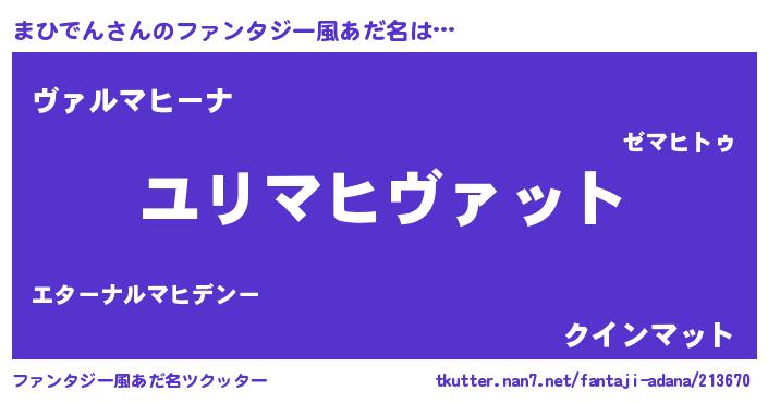 | 男性向けラノベタイトル風あだ名 | 『転生したらまひでんだった件』 |
