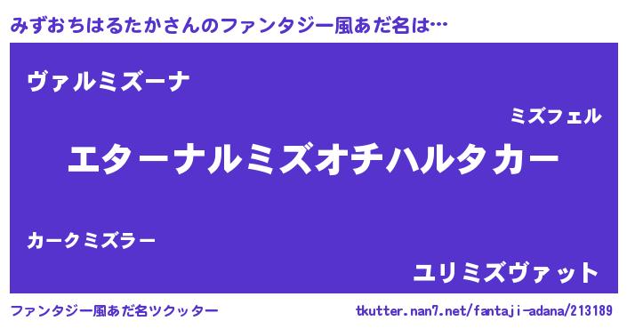 | 欧米人風あだ名 | 『みずおちはるたかクリステル』 |