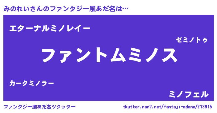 | ヒーロー風カッコイイあだ名 | 『炎刃騎士ミノ』『ウルトラみのれいマン』 |