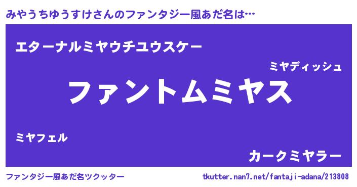 | 男性向けラノベタイトル風あだ名 | 『ダンジョンにみやうちゆうすけを求めるのは間違っているだろうか』 |