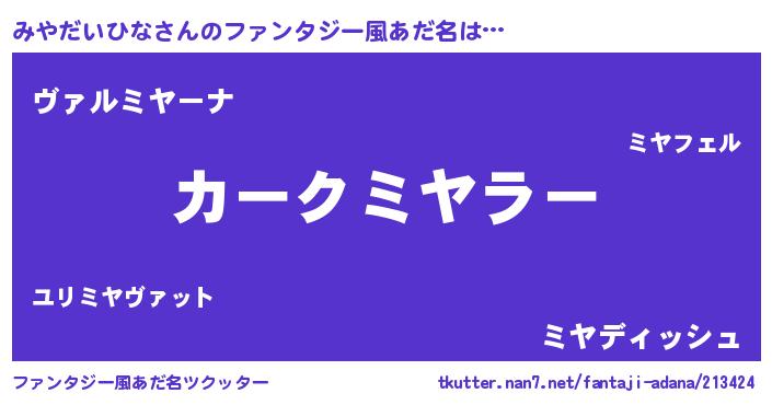 | ヒーロー風カッコイイあだ名 | 『仮面ミヤダー』『ネオミヤダイヒナ』 |